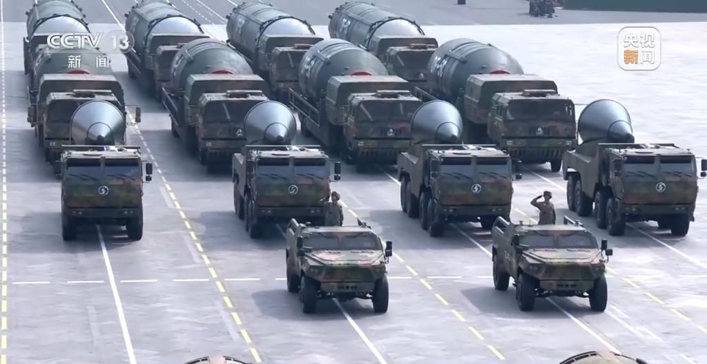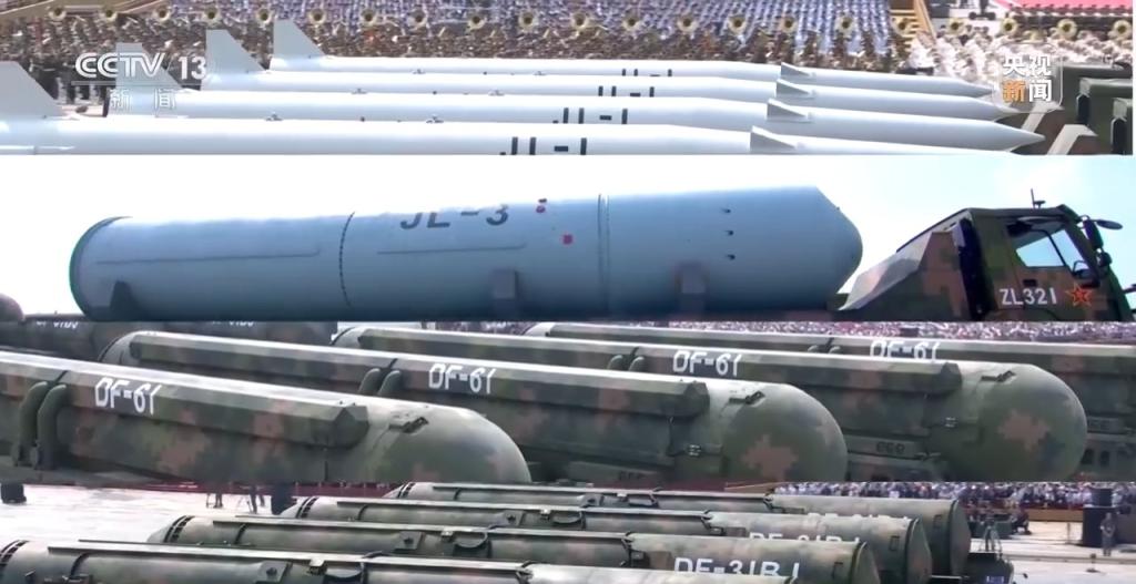作为九三大阅兵的压轴大戏,最后出场的核导弹方队受到各方高度关注。“惊雷-1”“巨浪-3”“东风-61”“东风-31”,核导弹 方队, 集中展示了陆、海、空基“三位一体”的战略核力量。