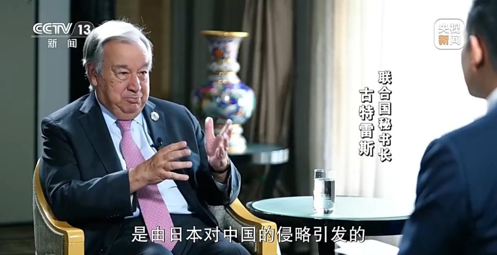 联合国秘书长 古特雷斯:事实是,二战的爆发是由日本对中国的侵略引发的,当时的九一八事变广为人知。所以,把二战的时间简单界定为1939年至1945年,是片面的。我们需要有更全面的视野,必须承认中国多年来的抗日斗争,是抗击日本的决定性因素,为削弱日本做出了根本性贡献。