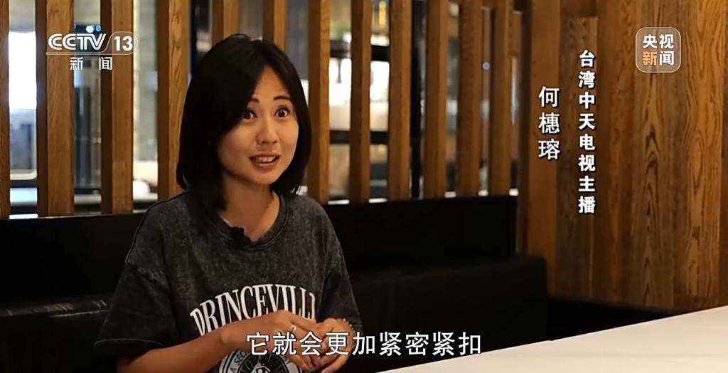 台湾中天电视主播 何橞瑢:对我来说是现场能感受到氛围的转换,从前面是大家惊叹、震惊、震撼,前面给你看的是国之重器,到后面就是要告诉大家,我今天有这些实力,我追求的是和平。我觉得,两岸之间的连接也是敞开心胸,它就会更加紧密紧扣。